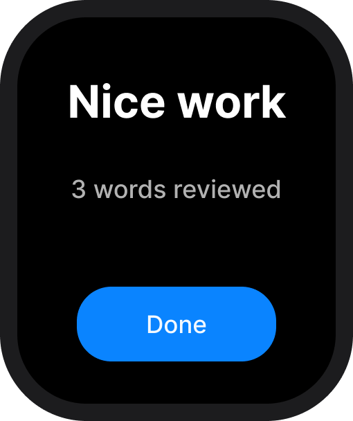 The watch is built for a moment, not a session. Adding lesson selection or settings would require a decision before the first word appears. Those features live on the phone — the watch converts the moment before it closes.